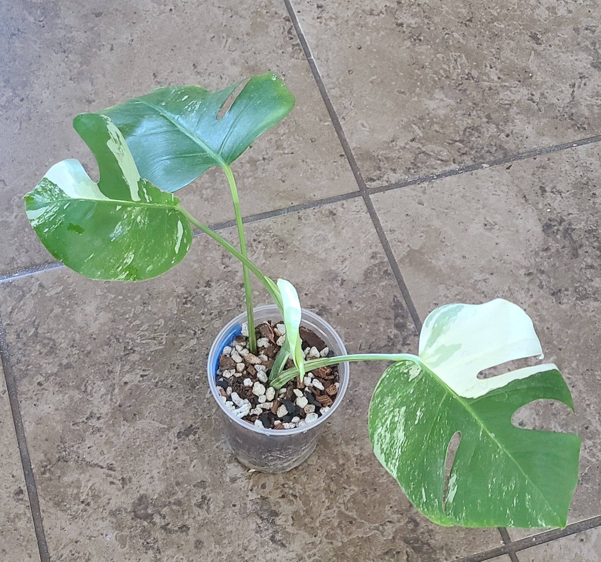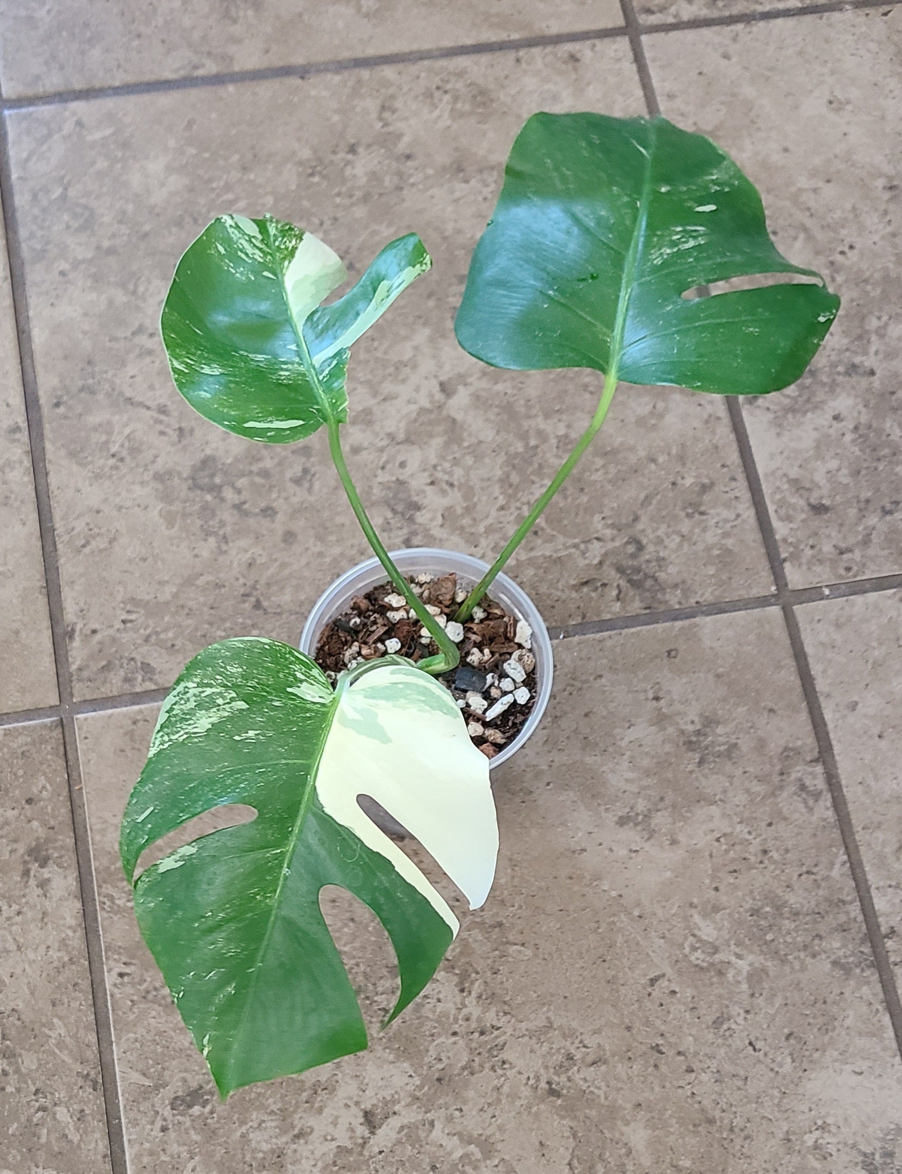 Rooted, 3-leaf Monstera Albo